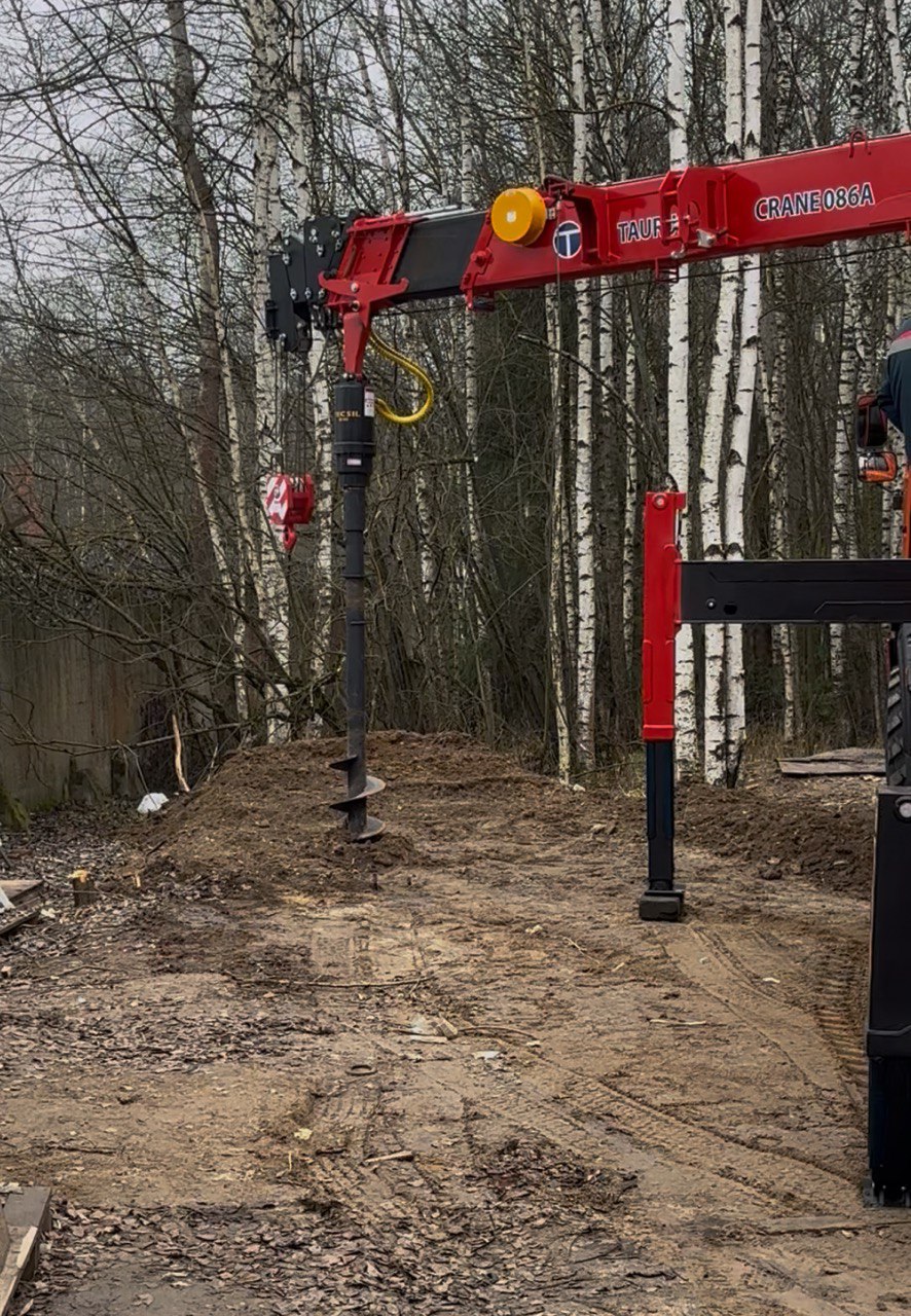 —Монтаж винтовых свай спецтехникой в труднодоступных местах в Серпухове